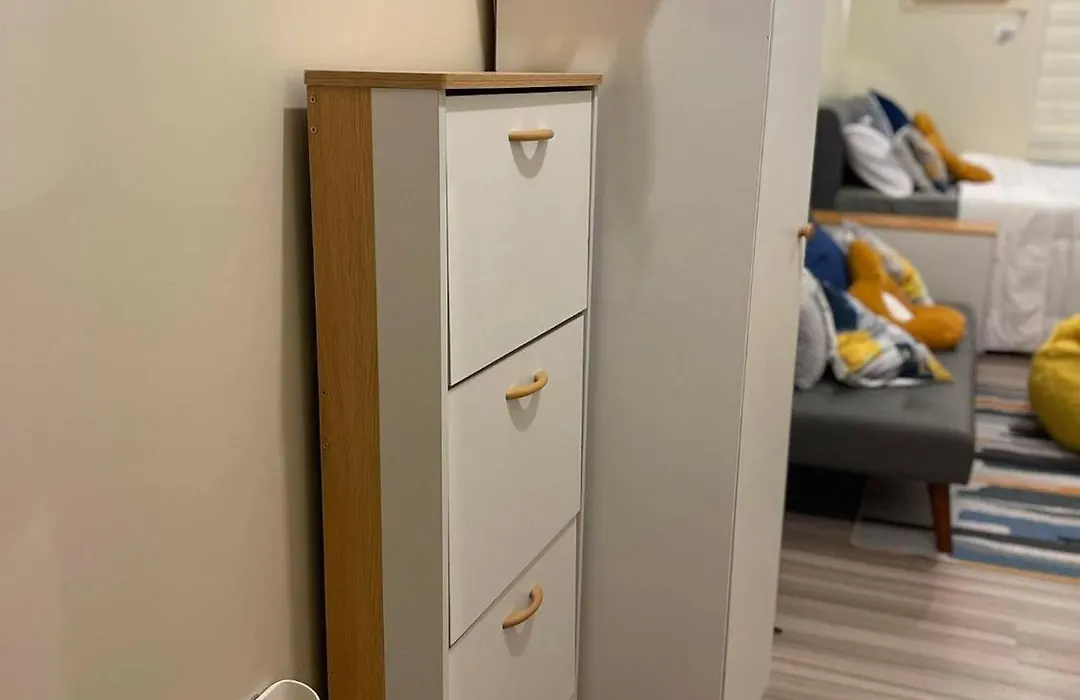 A refrigerator and an oven are featured in a mini-kitchen for your own cooking.